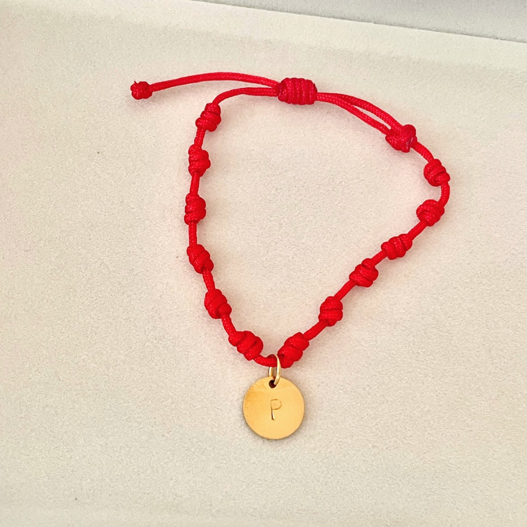 La pulsera Lazo está hecha de hilo con cierre de nudo ajustable, pensada para acompañarte cada día.