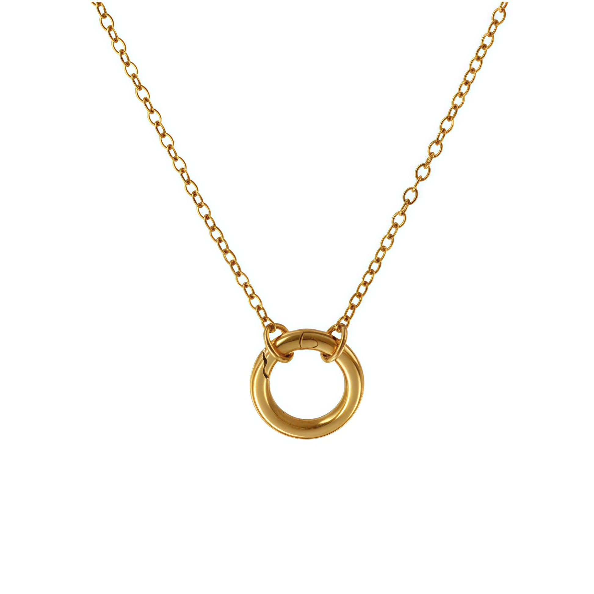 Su cadena de acero inoxidable con baño en oro aporta resistencia y brillo duradero y en el centro podrás añadir tus charms favoritos y cambiarlos las veces que quieras.